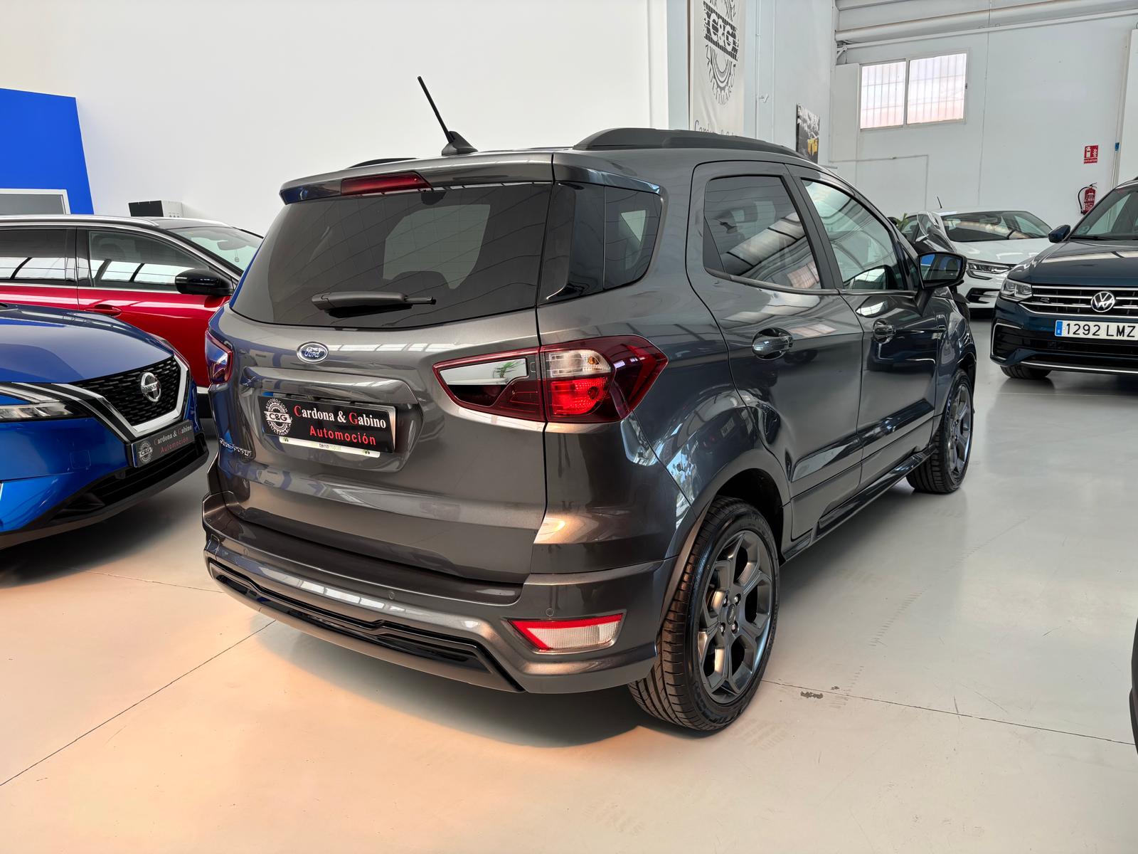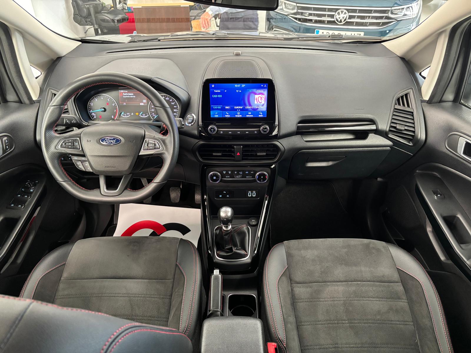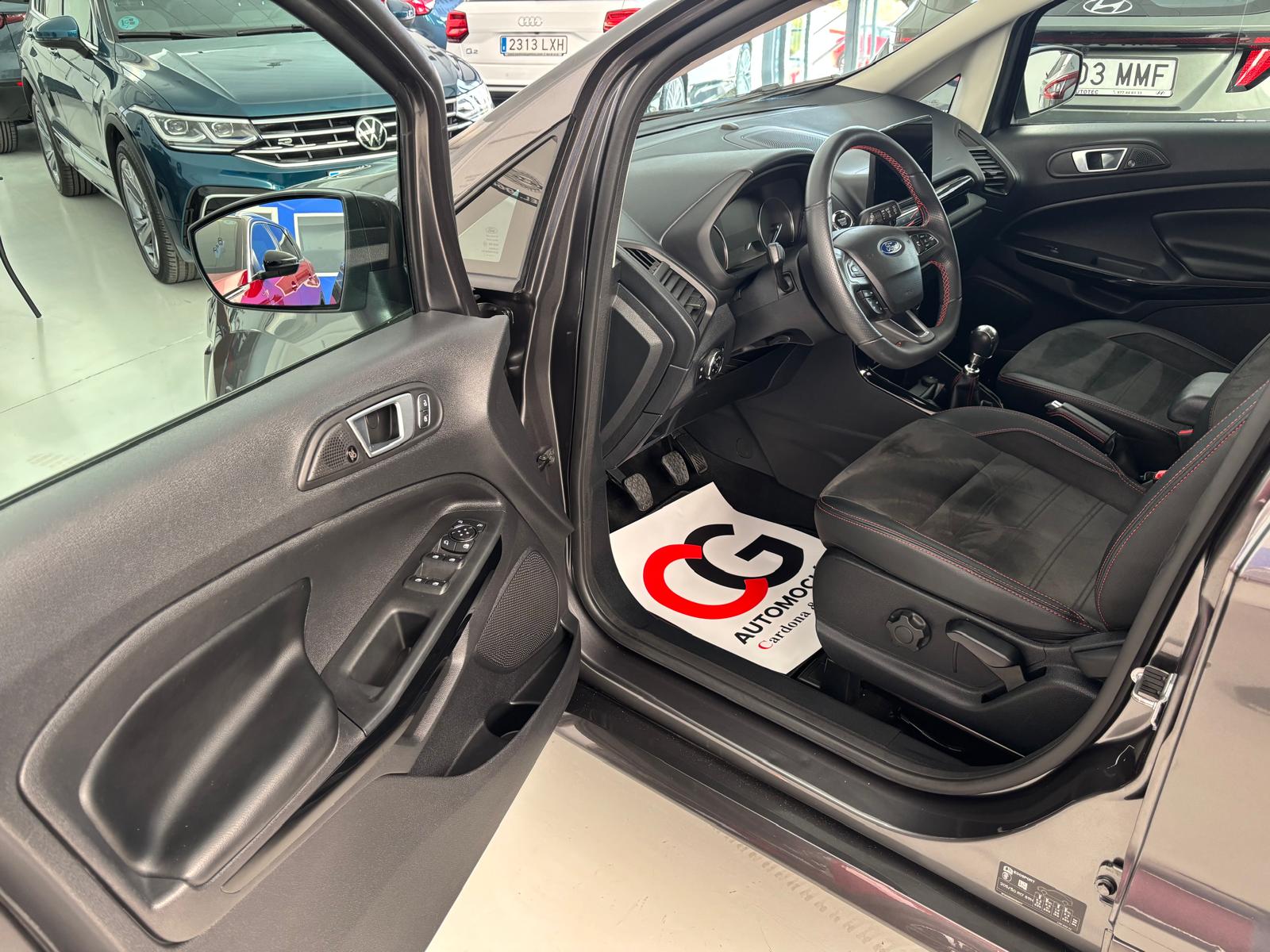 - Este Ford EcoSport ST Line combina la versatilidad de un SUV compacto con un carácter deportivo distintivo. Con su motor EcoBoost de 1.0 litros, ofrece un equilibrio entre prestaciones y consumo contenido, permitiendo un acceso sin restricciones a zonas urbanas gracias a su etiqueta medioambiental C.
