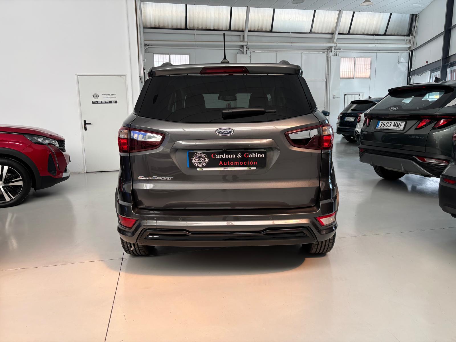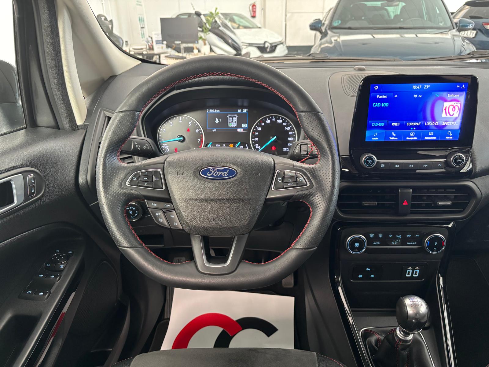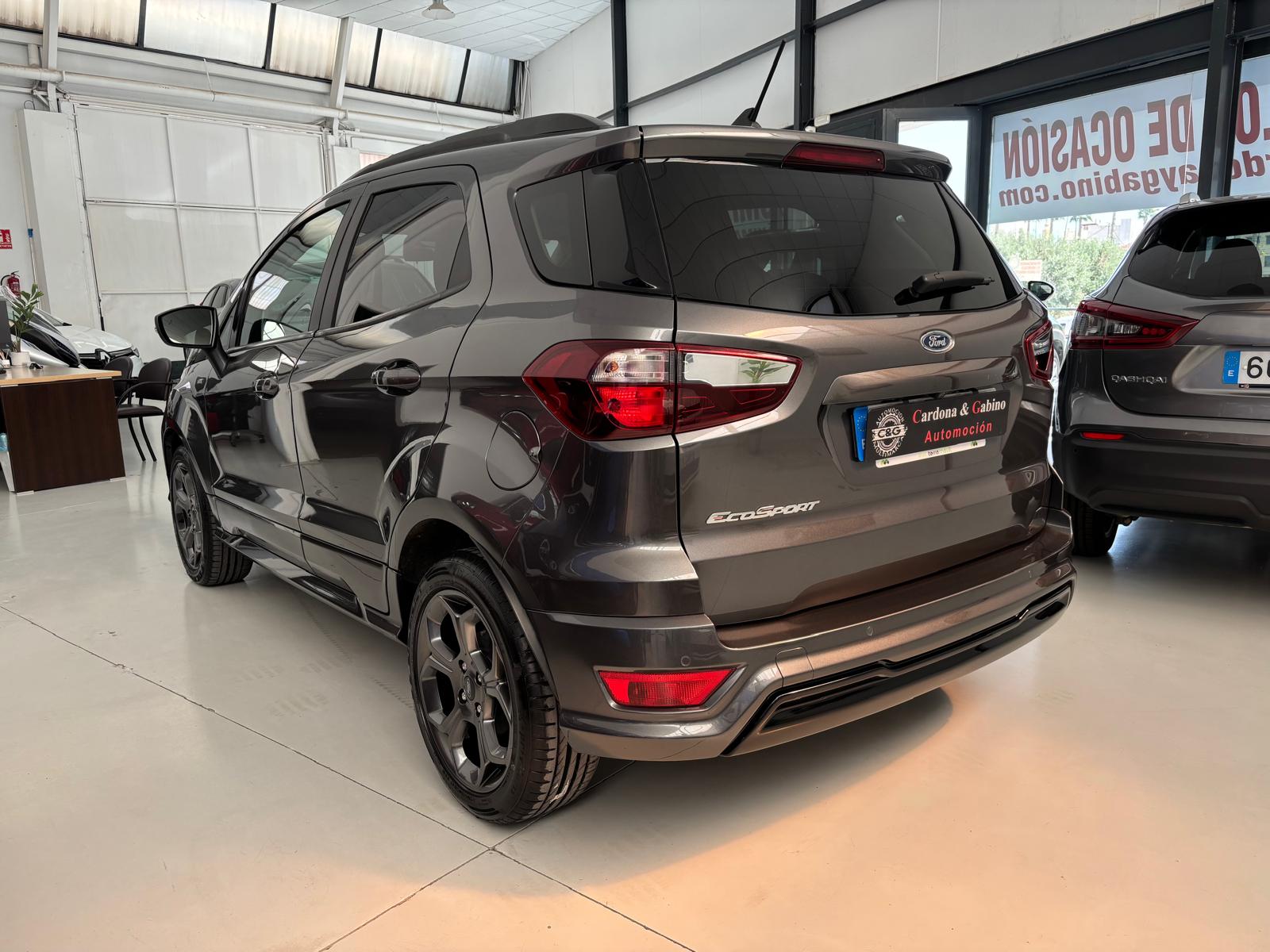 - Este Ford EcoSport ST Line combina la versatilidad de un SUV compacto con un carácter deportivo distintivo. Con su motor EcoBoost de 1.0 litros, ofrece un equilibrio entre prestaciones y consumo contenido, permitiendo un acceso sin restricciones a zonas urbanas gracias a su etiqueta medioambiental C.
