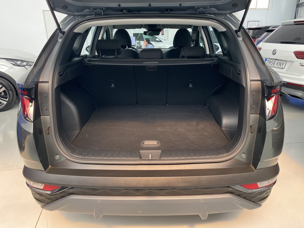 Este Hyundai Tucson 1.6 TGDI Maxx destaca por su equilibrio entre prestaciones y confort. Con una mecánica de 150 CV, este SUV ofrece un comportamiento dinámico ideal para el día a día, tanto en ciudad como en carretera. Su interior espacioso aprovecha cada centímetro con un maletero de 620 litros que se amplía hasta 1.799 litros con los asientos abatidos.