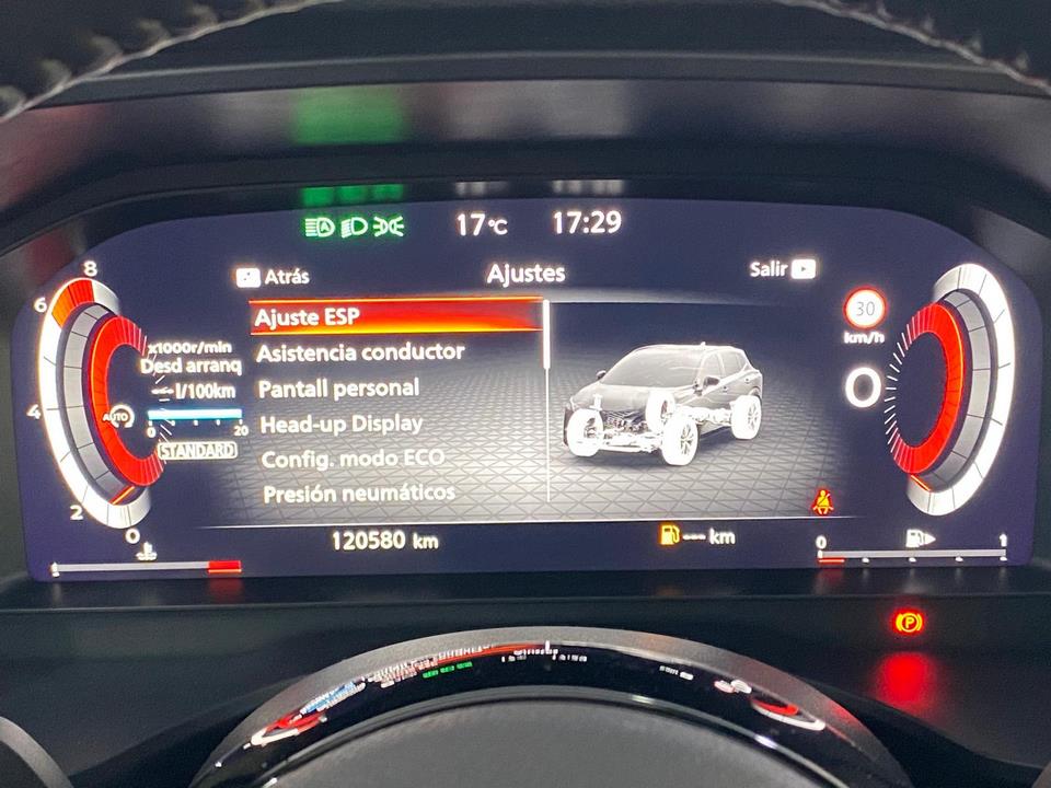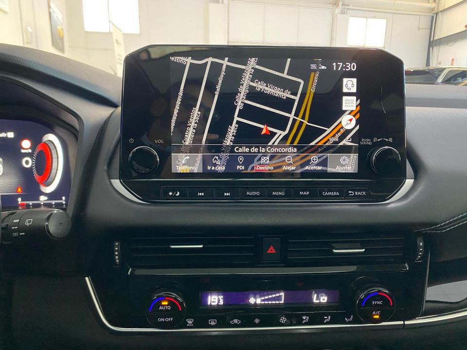 - Este vehículo destaca por su equipamiento completo orientado al confort y la seguridad, incluyendo climatizador bizona, navegador con pantalla táctil de 9″, sistema de aparcamiento con sensores y cámaras en todas las perspectivas, y control de crucero adaptativo.